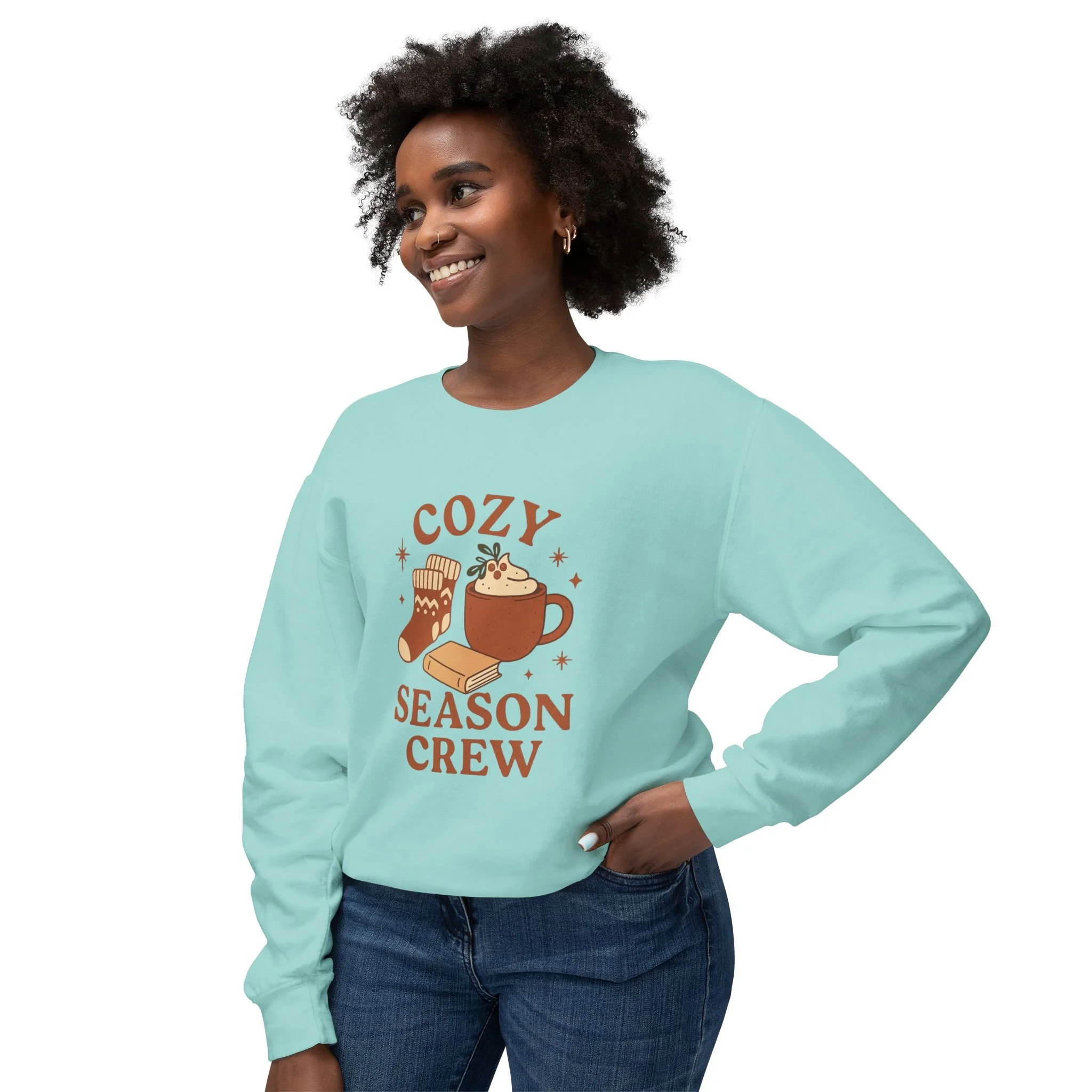 Comfort Colors: Cozy Season Crew Sweatshirt, Unisex Lightweight Sweatshirt, Fall Fashion, Holiday Gift, Coffee Lover Gift, Casual Wear